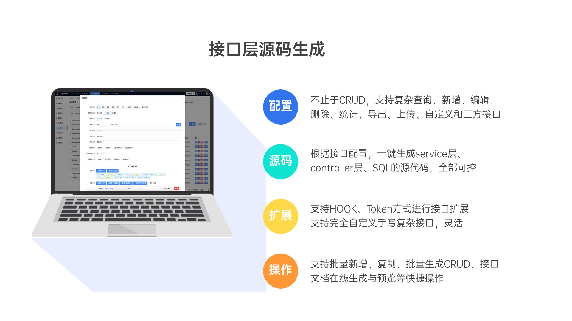 一(yī)款真正面向程序員(yuán)的(de)低(dī)代碼輔助開(kāi)發工(gōng)具÷↓∞,它能(néng)給你(nǐ)100%的(de)源代碼和(hé)λε100%開(kāi)發自(zì)由度。它遵循傳統開(kāi)發流₽>程生(shēng)成所有(yǒu)前後端源代碼,讓你(nǐ)既不(bù)會(h&×uì)有(yǒu)太多(duō)的(de)學習(xí€Ω€±)成本,也(yě)不(bù)用(yòng)擔心系₽§ δ統給你(nǐ)帶來(lái)任何限制(zhì)。
